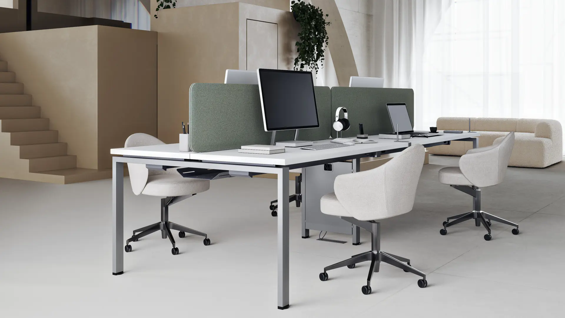 Our versatile platforms feature telescopic beams for flexibility, multi-rail systems for stability, and minimalist understructures for cost-effective solutions. A wide range of accessories, including cable management and optional fabric-covered dividing screens, further enhances functionality.